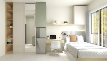 Each floor features two beautifully appointed communal kitchens, ideal for those occasions when residents prefer a more spacious, social cooking experience beyond their private kitchenette. These elegant shared spaces offer the perfect setting to prepare meals, connect with friends, and enjoy a change of pace in a warm, welcoming environment.